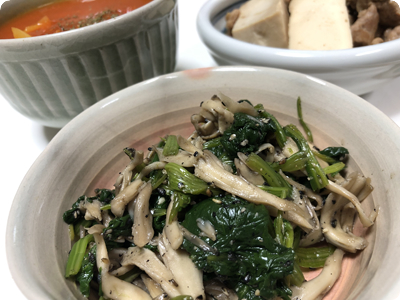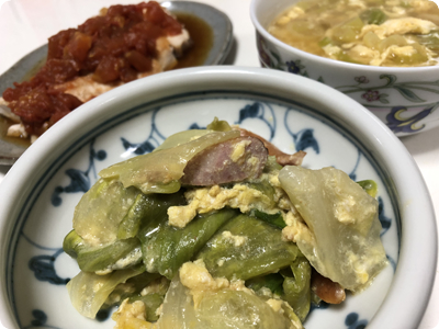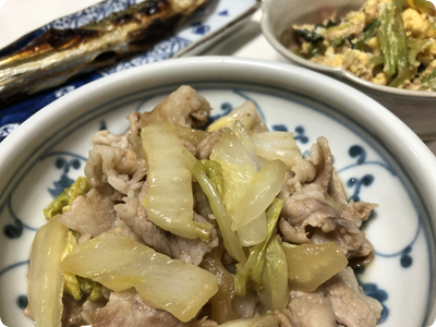 | ・和風トマトソースのチキンステーキ ・レタスのマヨネーズ炒め ・長ネギの中華風たまごスープ ・ごはん |