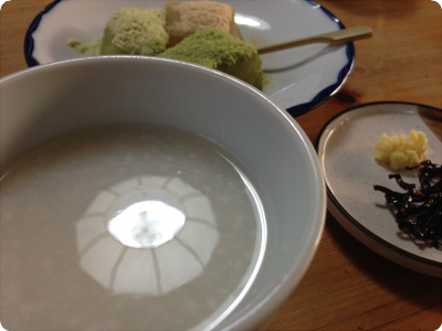 吉香公園内「ほしで茶屋」にて 甘酒とわらび餅
