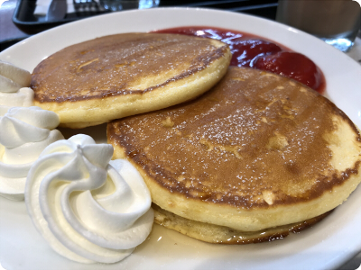 ストロベリーとはちみつのパンケーキ&アイスカフェオレ