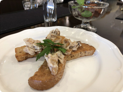 | 「DOLCE VITA」にて ・グレープフルーツとパッションフルーツのノンアルコールカクテル ・ディップ&ペースト ・自家製生チョコレート |